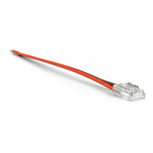 Dostarczone w zestawie przewody można wyciągnąć ze złączki i wsunąć inne przewody o zbliżonej średnicy co pozwala na bezproblemowe podłączenie taśmy LED COB bezpośrednio do istniejącej instalacji przewodowej bez konieczności lutowania lub łączenia przewodów.