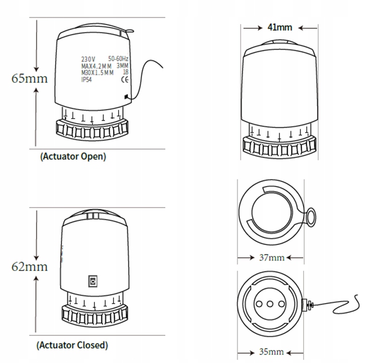 ℹ️ Siłowniki termoelektryczne przeznaczone są do automatycznego zamykania i otwierania zaworów zamontowanych na rozdzielaczach grzewczych lub otwierania i zamykania zaworów rozdzielacza, szyny ogrzewania podłogowego.