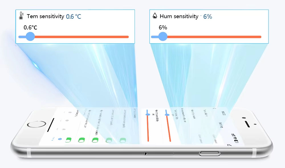 - ✅ Ustawienie czułości każdego sensora — wartość, po której przekroczeniu czujnik zgłasza zmianę stanu do systemu Tuya.