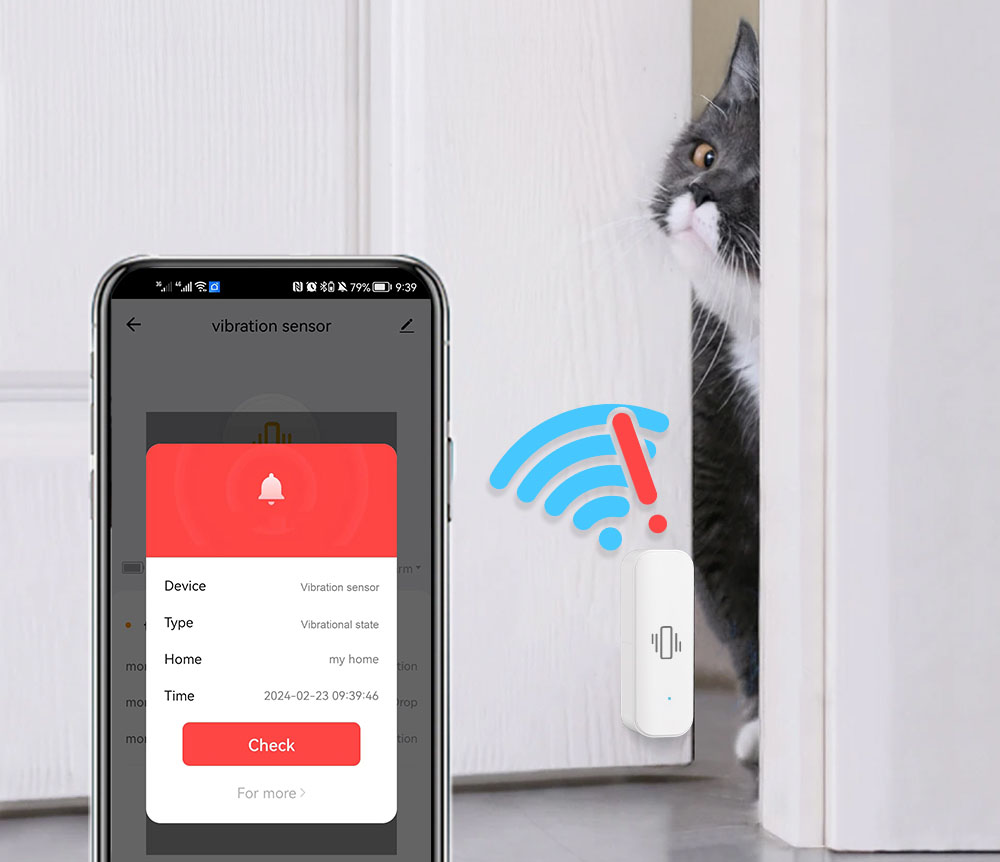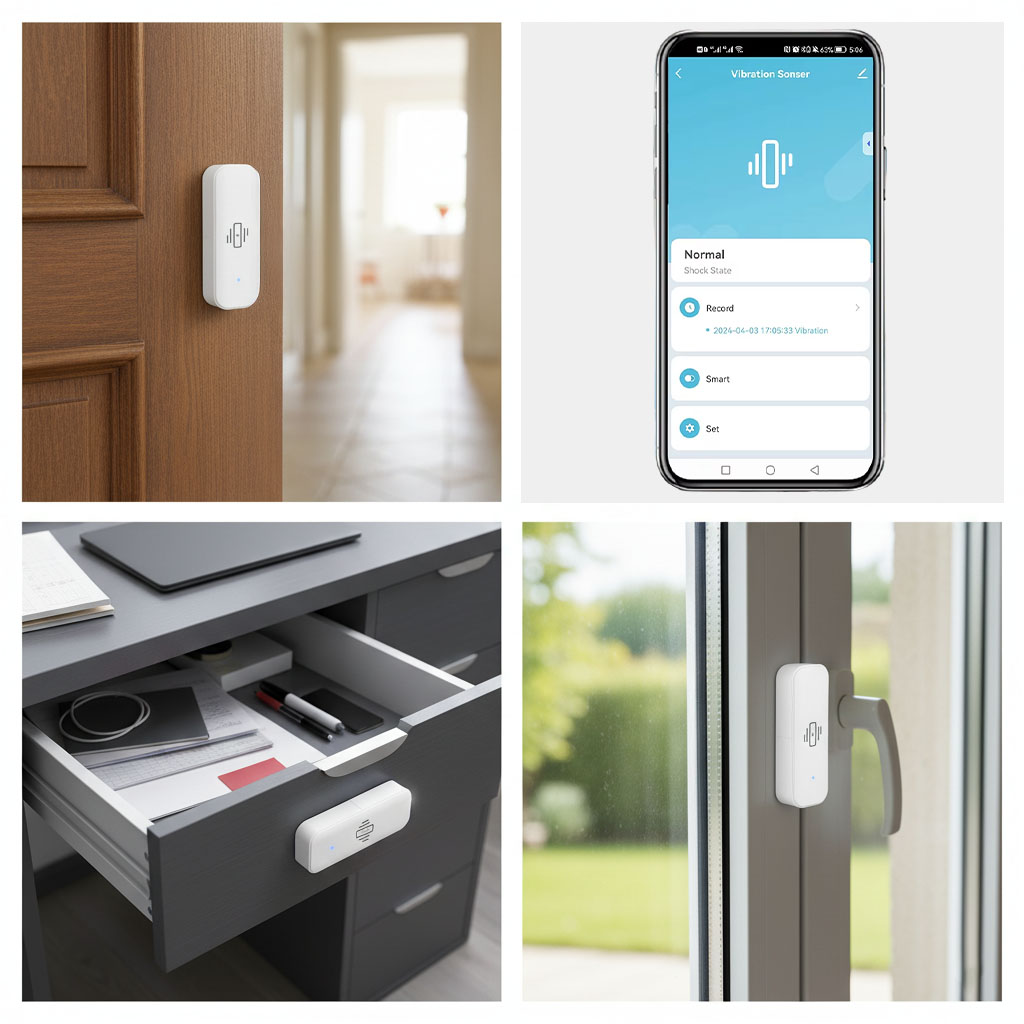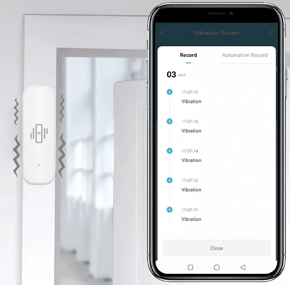 - ✅ Automatyczne powiadomienia – alerty na telefon po wykryciu wibracji.