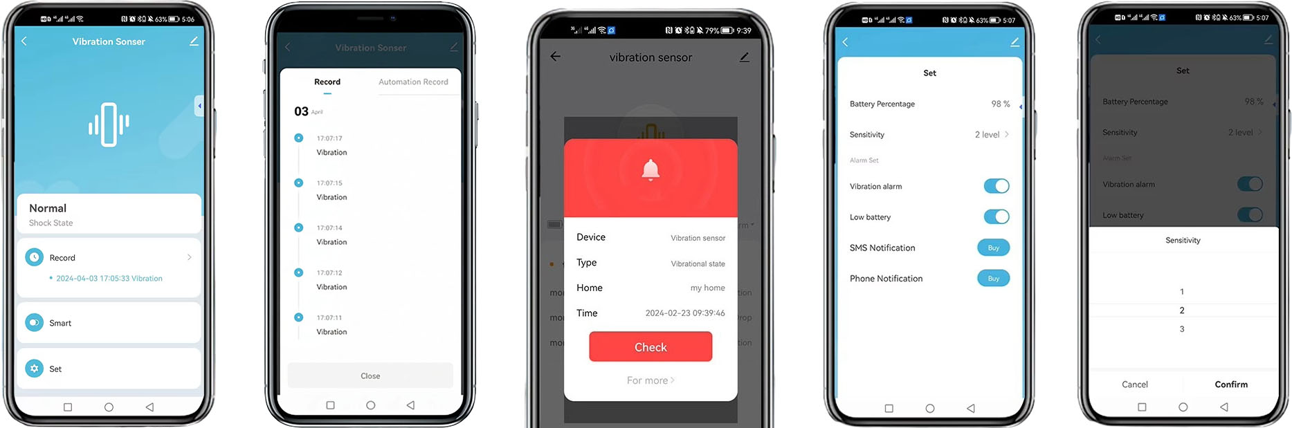 - Przeglądaj zapis wibracji oraz automatyzacji w aplikacji.
