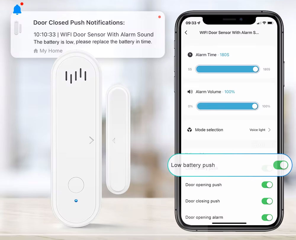 - Czujnik otwarcia drzwi/okien W-Fi / Bluetooth