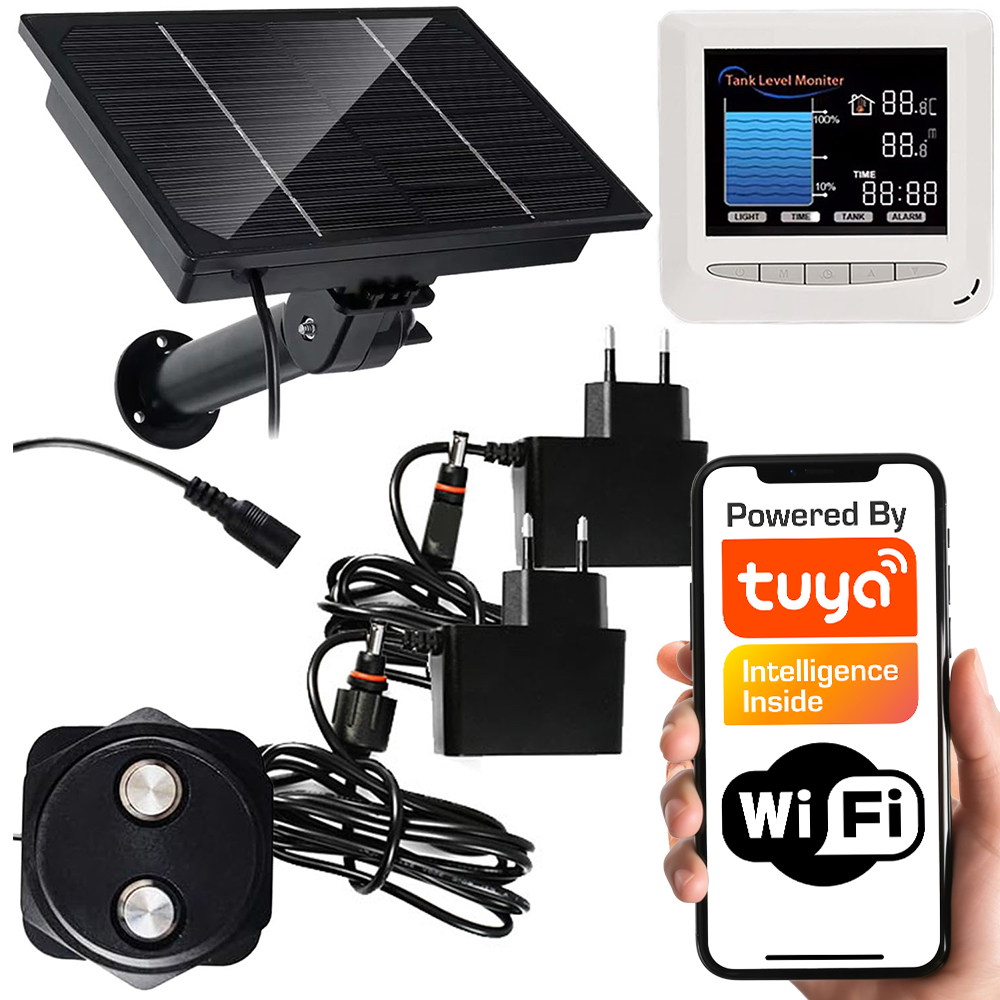Czujnik poziomu cieczy do zbiorników | szambo, deszczkówka | Akumulator i Panel słoneczny | Wyświetlacz PV IP65 | WiFi | TUYA