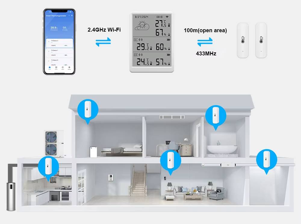 ✅ Łączność bezprzewodowa: stabilne połączenie WiFi 2.4 GHz i bezprzewodowy czujnik zewnętrzny