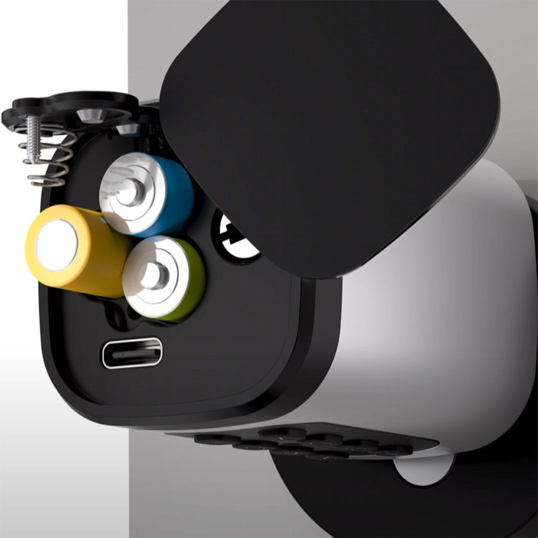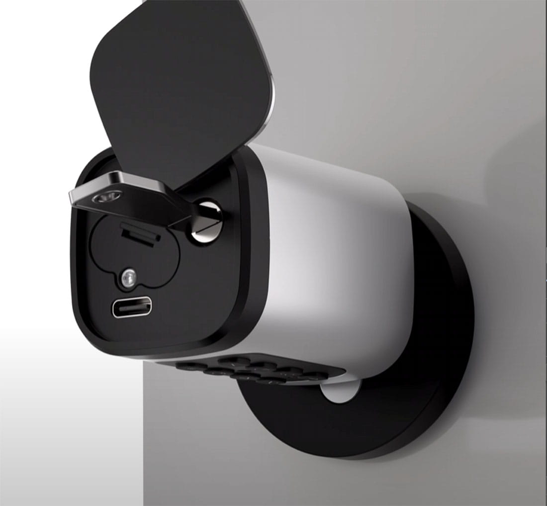 - ✅ Alternatywne otwarcie: W razie pełnego rozładowania wszystkich baterii, wkładkę można otworzyć poprzez tymczasowe podłączenie zasilania kablem USB-C lub przy użyciu klucza fizycznego. ⚠️ (Urządzenia nie można naładować). Wymagana jest wymiana baterii.