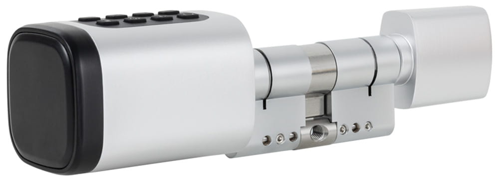 - Aby zamknąć lub otworzyć drzwi, użyj dowolnego klucza (kod PIN, karta/brelok RFID, odcisk palca, aplikacja lub klucz fizyczny) i przekręć wkładkę.