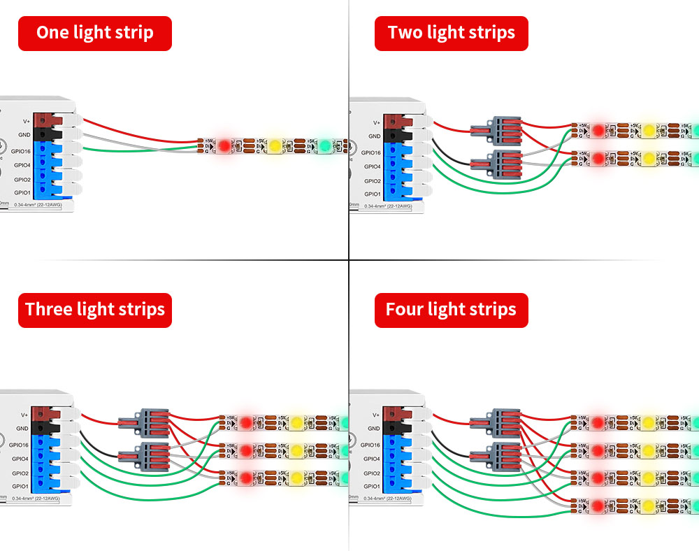 - ✅ Kompatybilny z taśmami adresowalnymi WS2811, WS2812, SK6812, WS2815 i innymi