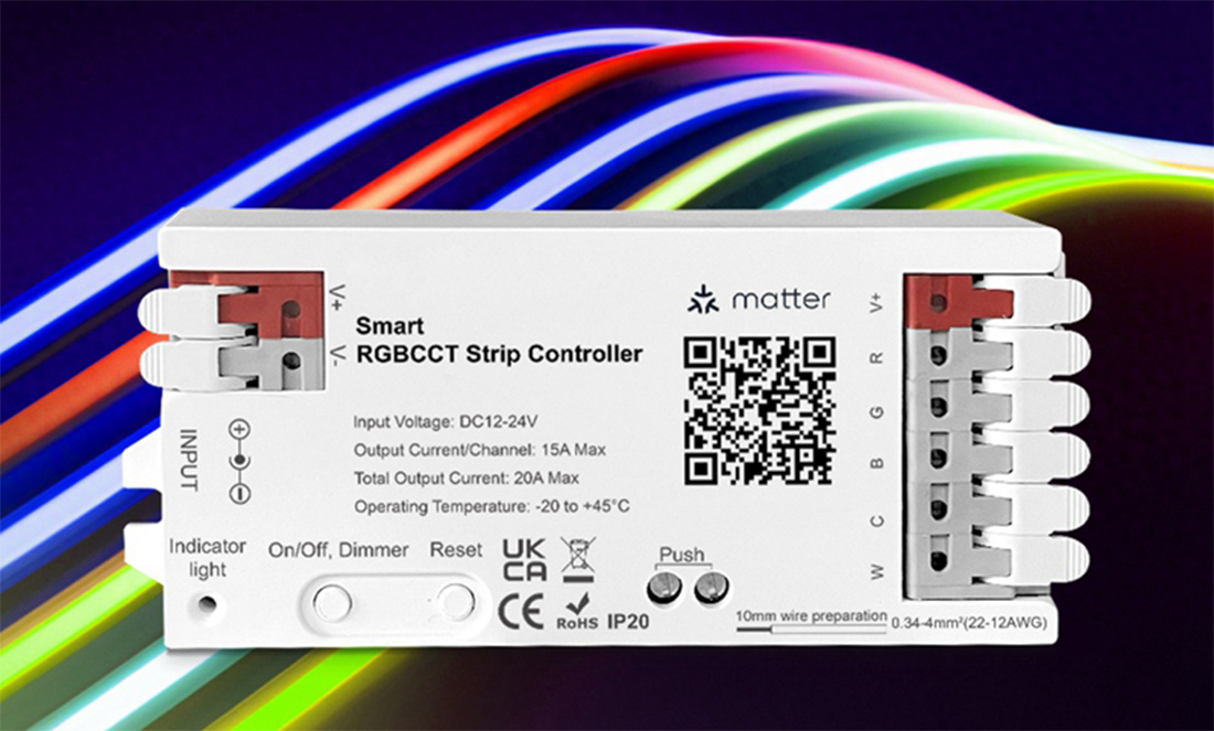 ➡️ Wzbogać oświetlenie w element zdalnej inteligencji, dzięki kontrolerowi RGBCCT 20A z obsługą WiFi oraz nowoczesnego, uniwersalnego protokołu Matter!