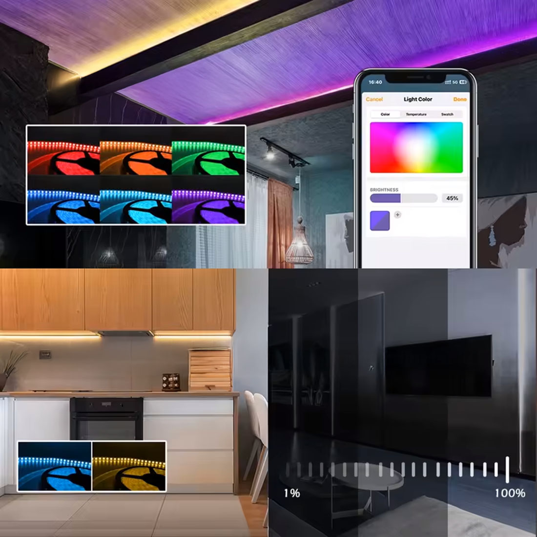 ✅ Pełna kontrola RGBCCT: Ustawiaj dowolne kolory, odcienie bieli (Ciepły, Neutralny, Zimny) i reguluj jasność światła LED dla idealnego klimatu w każdym pomieszczeniu.