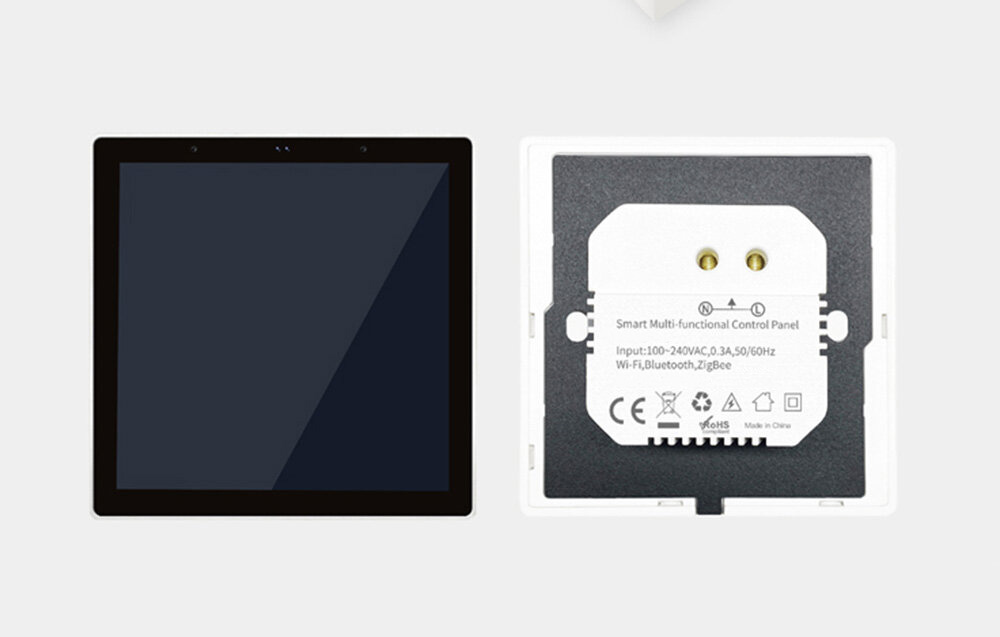Panel oferuje jasny, 4-calowy ekran dotykowy, na którym możesz dowolnie konfigurować widoczność pomieszczeń i urządzeń, tworzyć scenariusze automatyzacji oraz dostosowywać wygląd ekranu głównego. Dodatkowo wspiera sterowanie głosowe (Alexa, Google Assistant) i wyświetla bieżącą pogodę oraz godzinę.