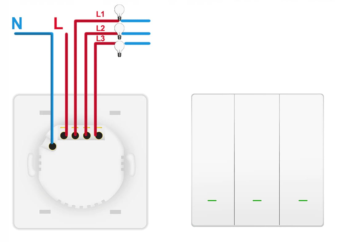 Inteligentny przełącznik ścienny model EM3 Smart Life biały 3 kanałowy jest przełącznikiem ściennym umożliwiającym użytkownikom zdalne włączanie i wyłączanie trzech podłączonych obwodów zasilania oświetlenia z dowolnego miejsca w dowolnym czasie: