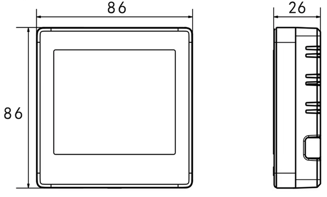 - Wymiary: 86 × 86 × 26 mm