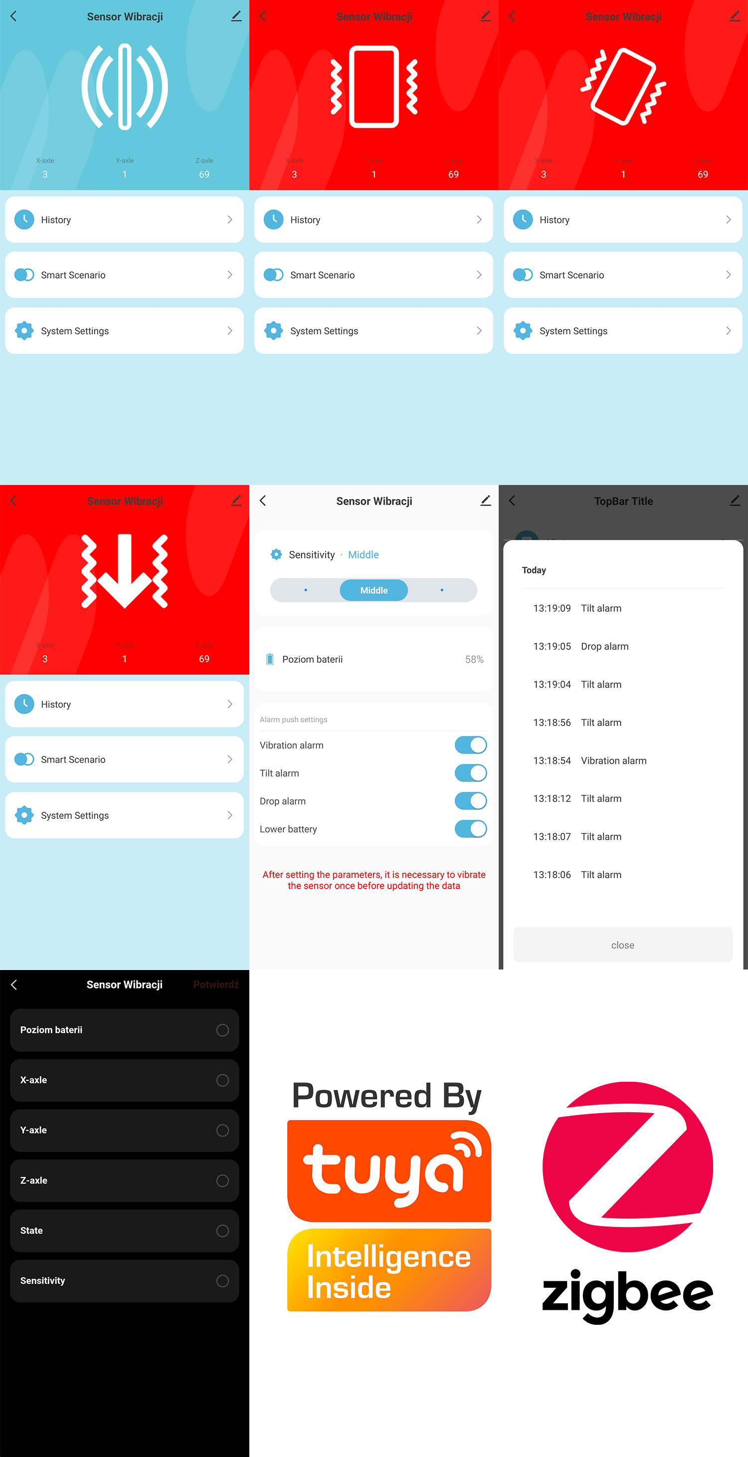 - 1x Czujnik wibracji i drgań ZigBee TUYA