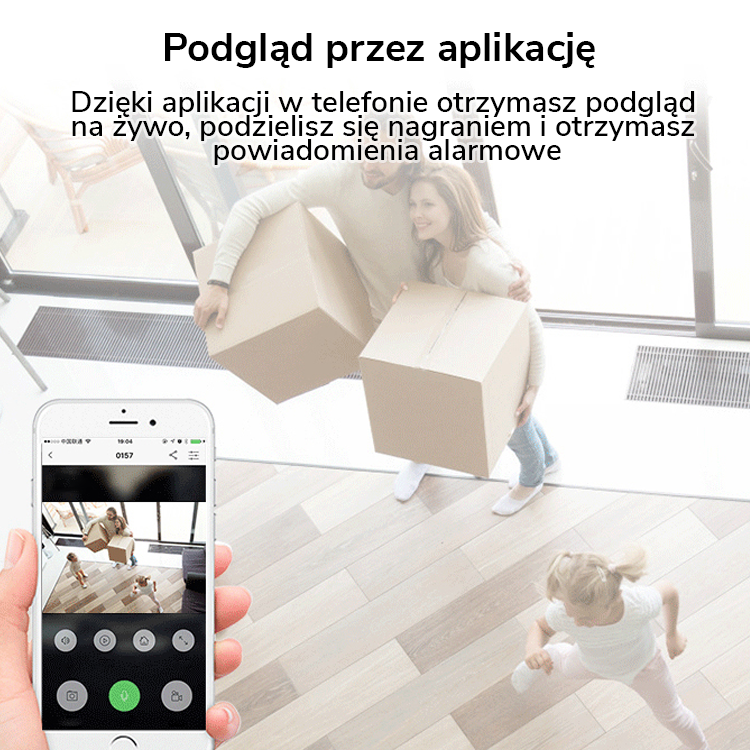 Dzięki aplikacji w telefonie otrzymasz podgląd na żywo, podzielisz się nagraniem z rodziną oraz otrzymasz powiadomienie alarmowe.
