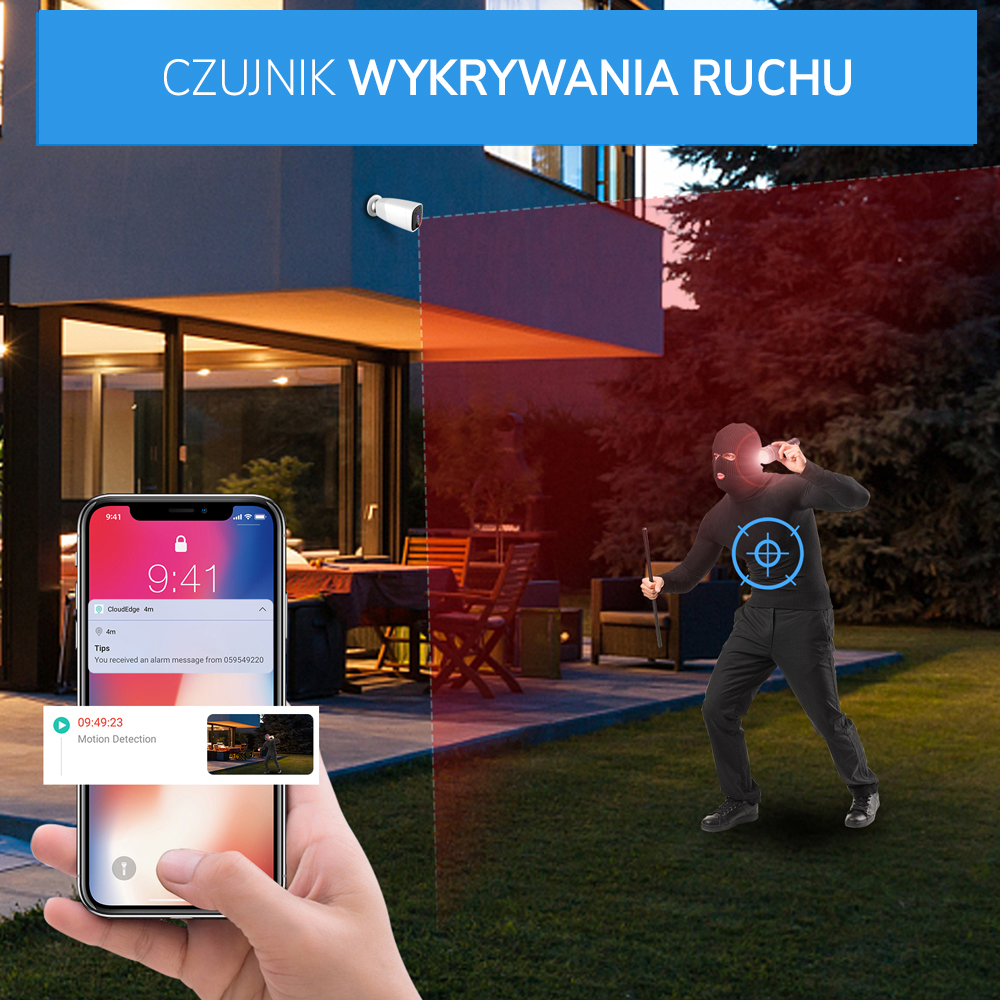 - ☑️Natychmiastowe powiadomienie push do aplikacji na smartfona o wykryciu ruchu