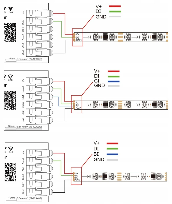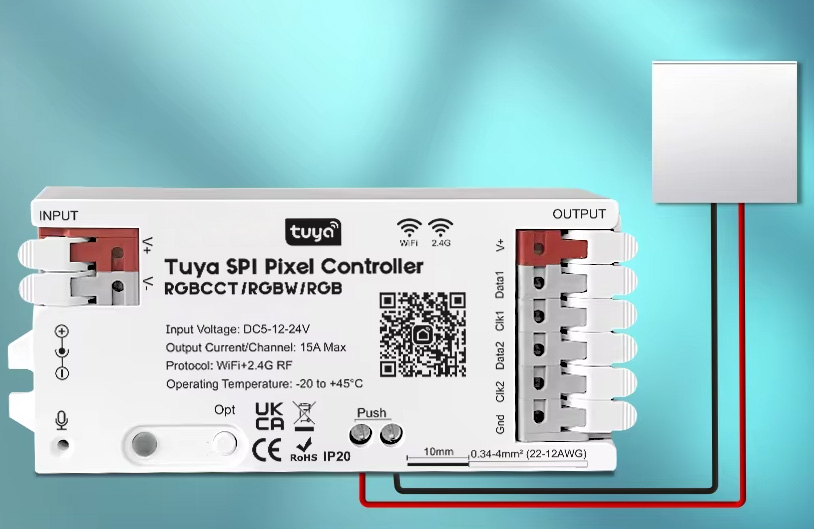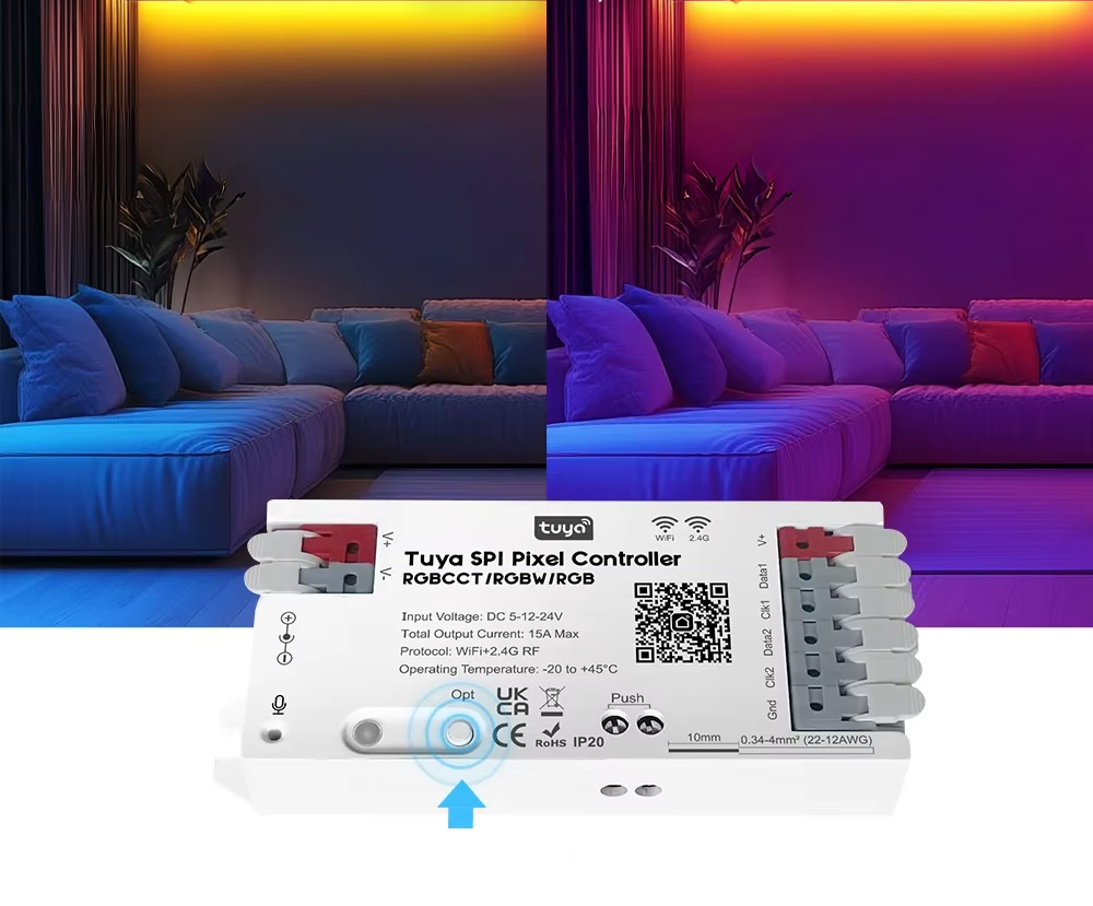 - Wszechstronność: Obsługa adresowalnych / cyfrowych taśm RGB, RGBW oraz RGBCCT z IC.