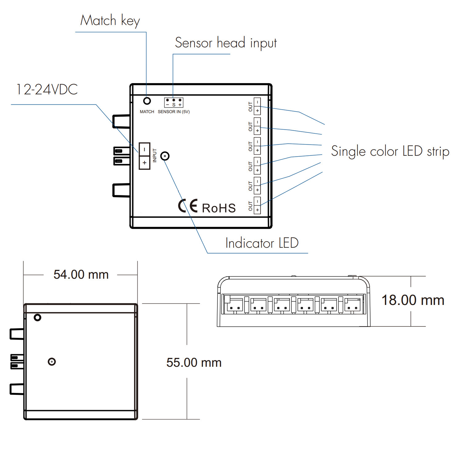 Urządzenie posiada dedykowane wejście, które umożliwia łatwą, szybką i wszechstronną instalację różnego rodzaju sensorów przewodowych z serii SD, takich jak ruchu, dotyku, zbliżeniowych lub otwarcia/zamknięcia. Podłączone taśmy LED będą w stanie włączyć się zależnie od podłączonego rodzaju czujnika.