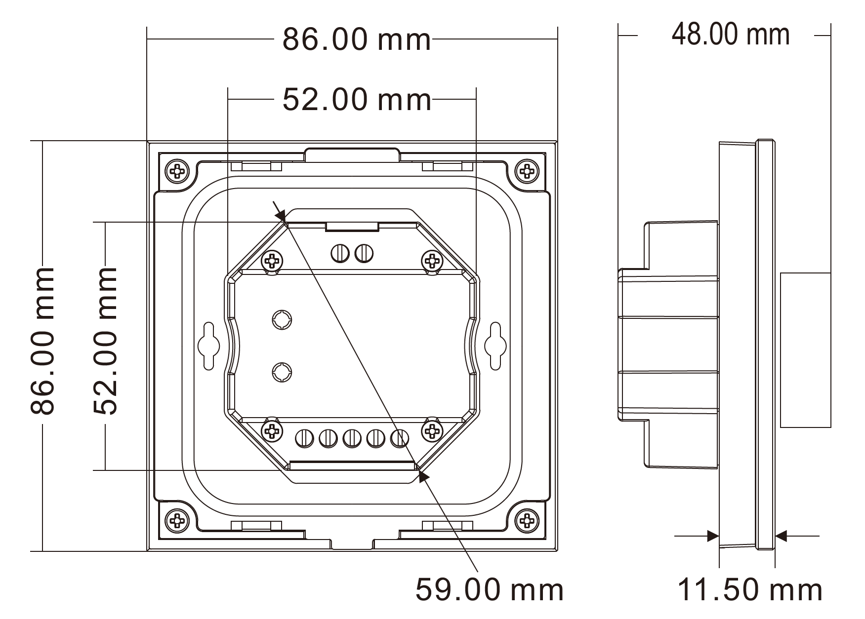 - Wymiary panelu: 86 × 86 mm