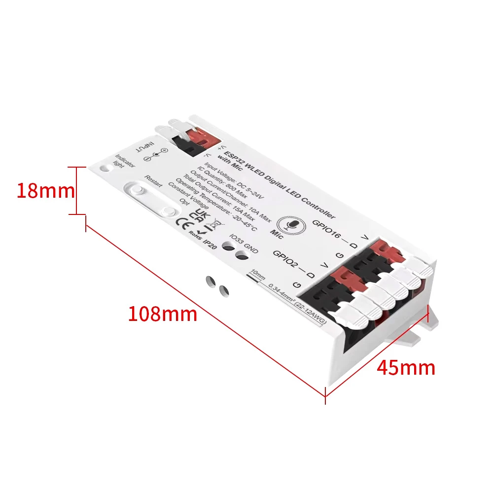 Kontroler LED RGBIC ESP32 10A 5-24V Mikrofon Seria GL WiFi WLED