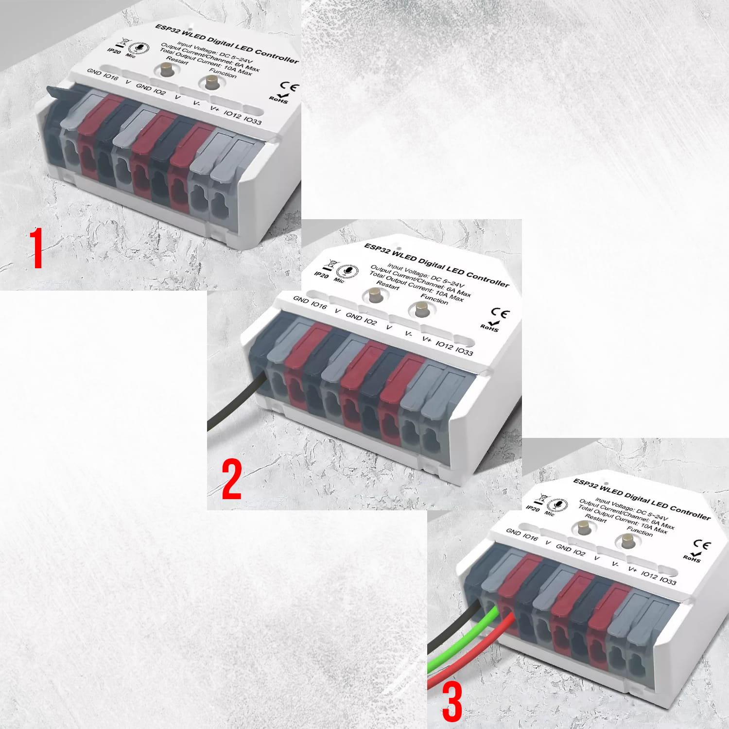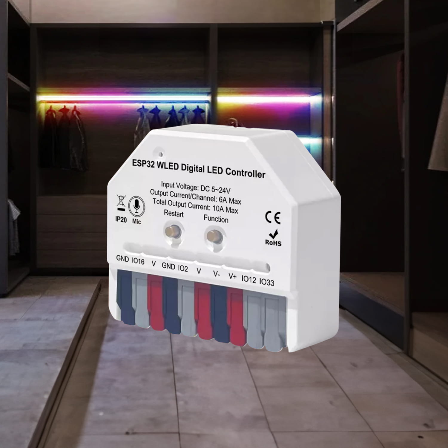 Odkryj nową erę oświetlenia! Ten kompaktowy kontroler do montażu dopuszkowego zapewnia pełną kontrolę nad indywidualnie adresowalnymi paskami RGBIC (5-24 V).