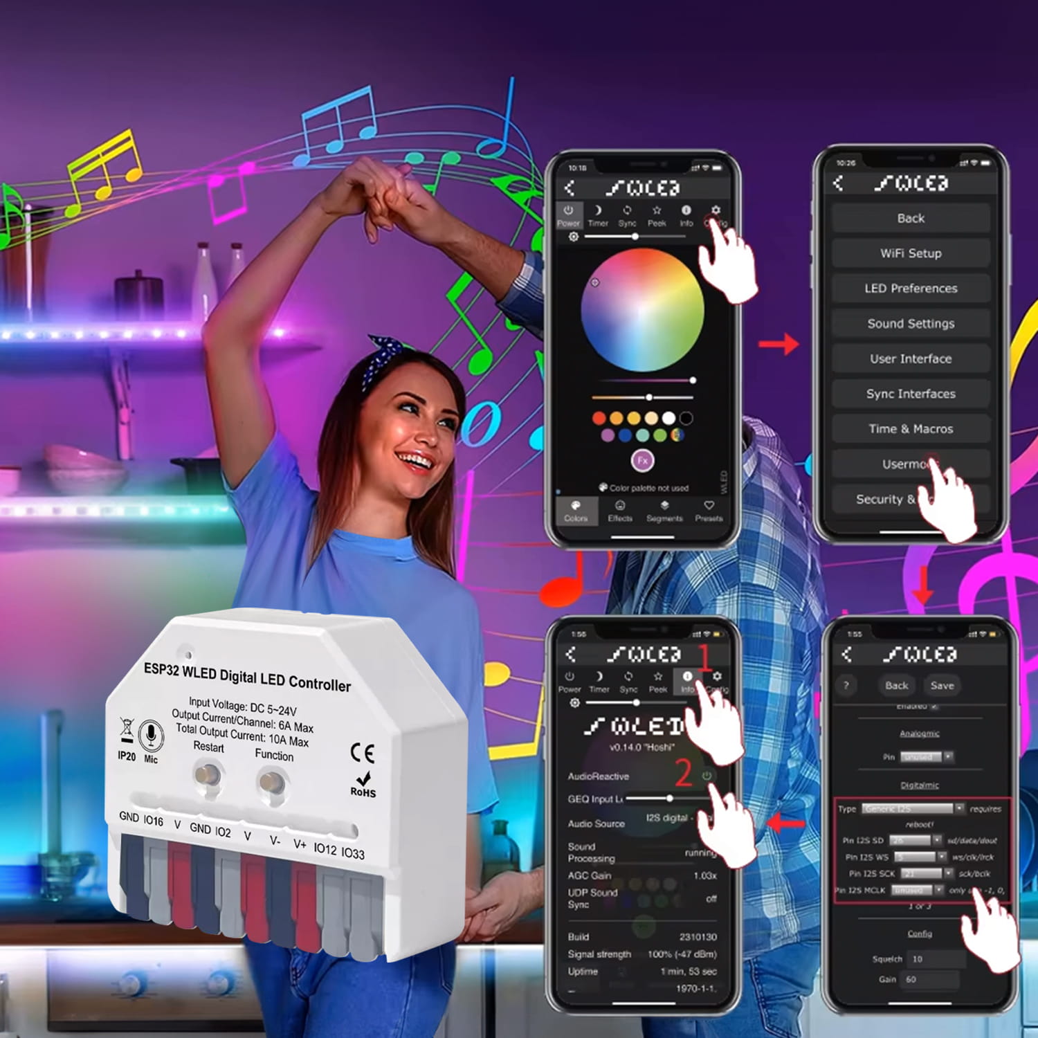 Kompaktowy Kontroler RGBIC z WLED i Music Sync
