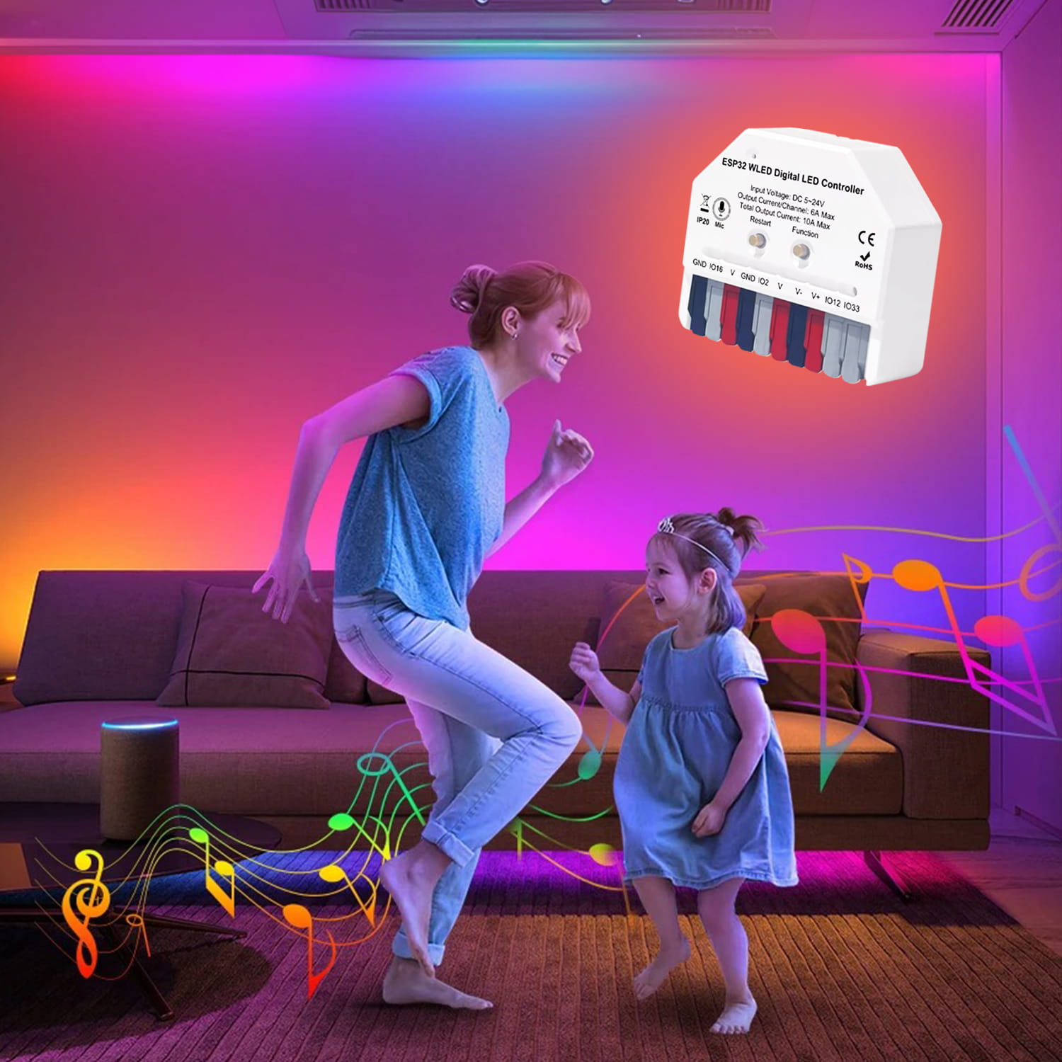 Dzięki technologii WLED zintegruj go z Home Assistant, steruj przez aplikację i synchronizuj dynamiczne efekty świetlne z muzyką za pomocą wbudowanego mikrofonu. Stwórz spektakularne instalacje w każdym wnętrzu!