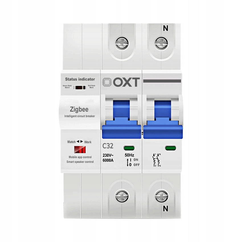 OXT Bezpiecznik C 32A 2P 54mm ZigBee DIN TUYA