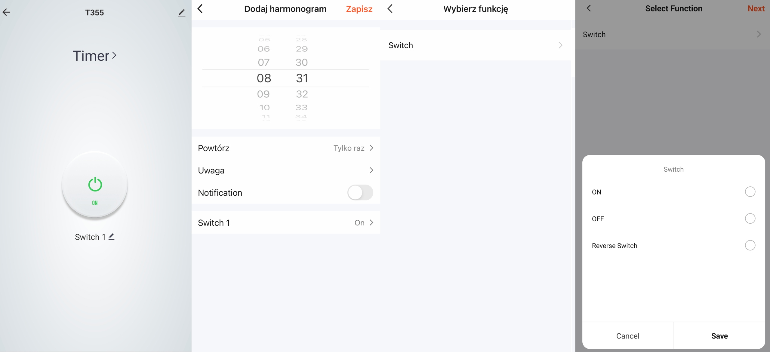 - W aplikacji TUYA możesz ustawić timery i harmonogramy, aby urządzenie przełączało się automatycznie