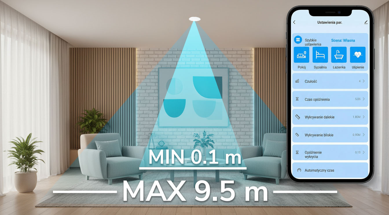 - ✅ Detekcja bezruchu – Czujnik wie, że tam jesteś, nawet jeśli siedzisz całkowicie nieruchomo.