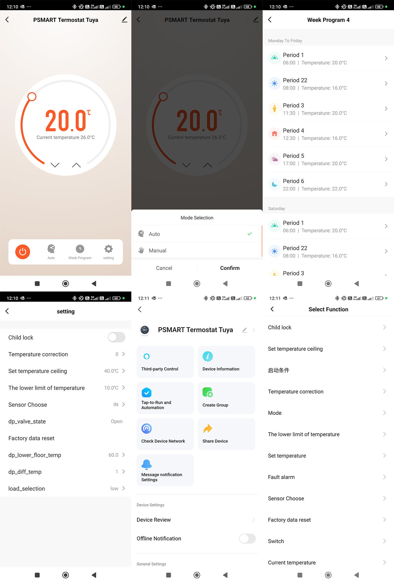 Za pomocą aplikacji TUYA lub Smart Life, możesz łatwo zaprogramować działanie termostatu na 5+2, 6+1 lub 7 dni, z możliwością ustawienia do 6 zmian temperatury dziennie.