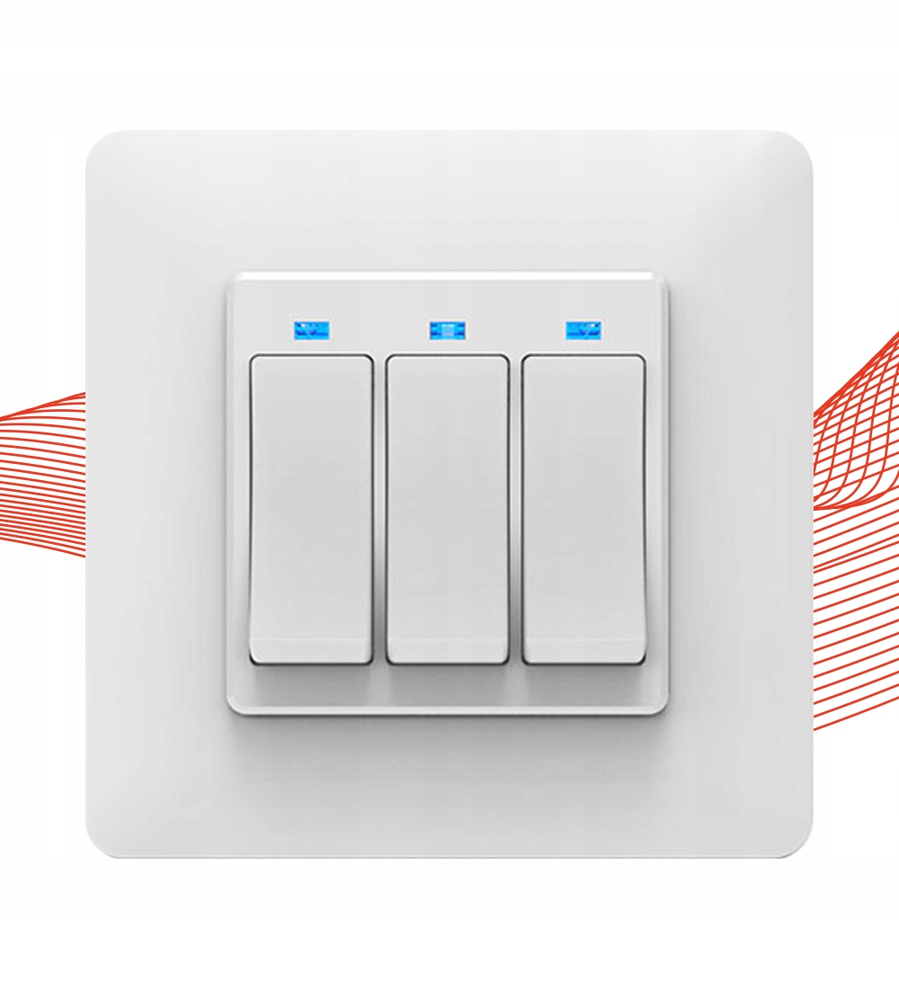 Inteligentny przełącznik ścienny Seria RM Biały 3 Obwodowy jest przełącznikiem ściennym modułowym umożliwiającym użytkownikom zdalne włączanie / wyłączanie podłączonych trzech obwodów oświetleniowych z dowolnego miejsca na świecie: