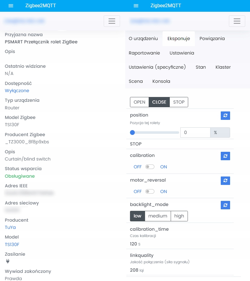 Poniżej przedstawiamy screeny z aplikacji Home Assistant ZigBee2MQTT!