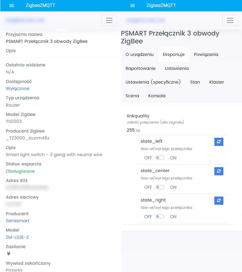 Poniżej przedstawiamy screeny z aplikacji Home Assistant ZigBee2MQTT!