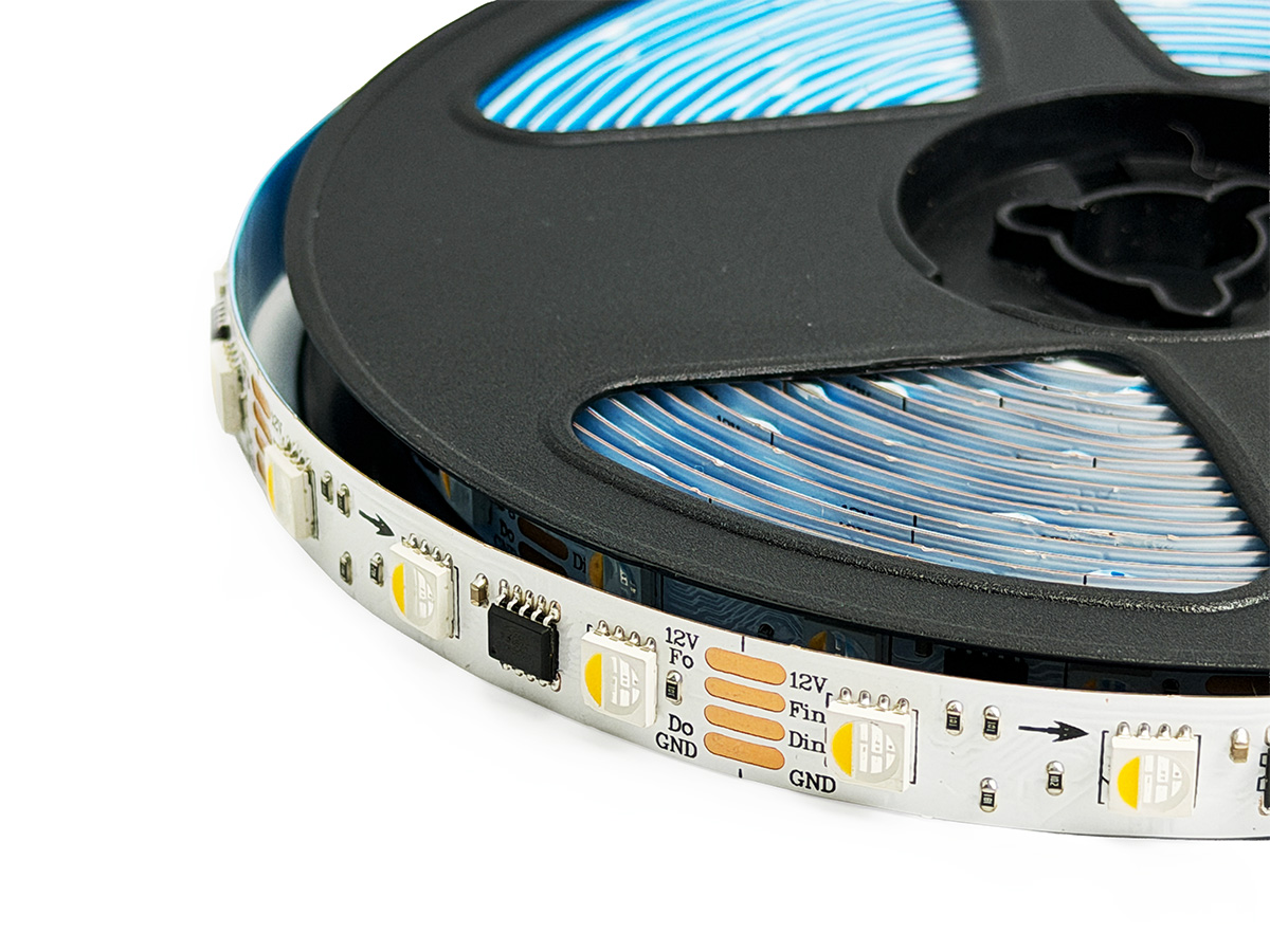 - Ciepła biel 3000K: W przeciwieństwie do zwykłych taśm RGB, ten model posiada oddzielny emiter światła białego, co gwarantuje czystą barwę bez niebieskiej poświaty.