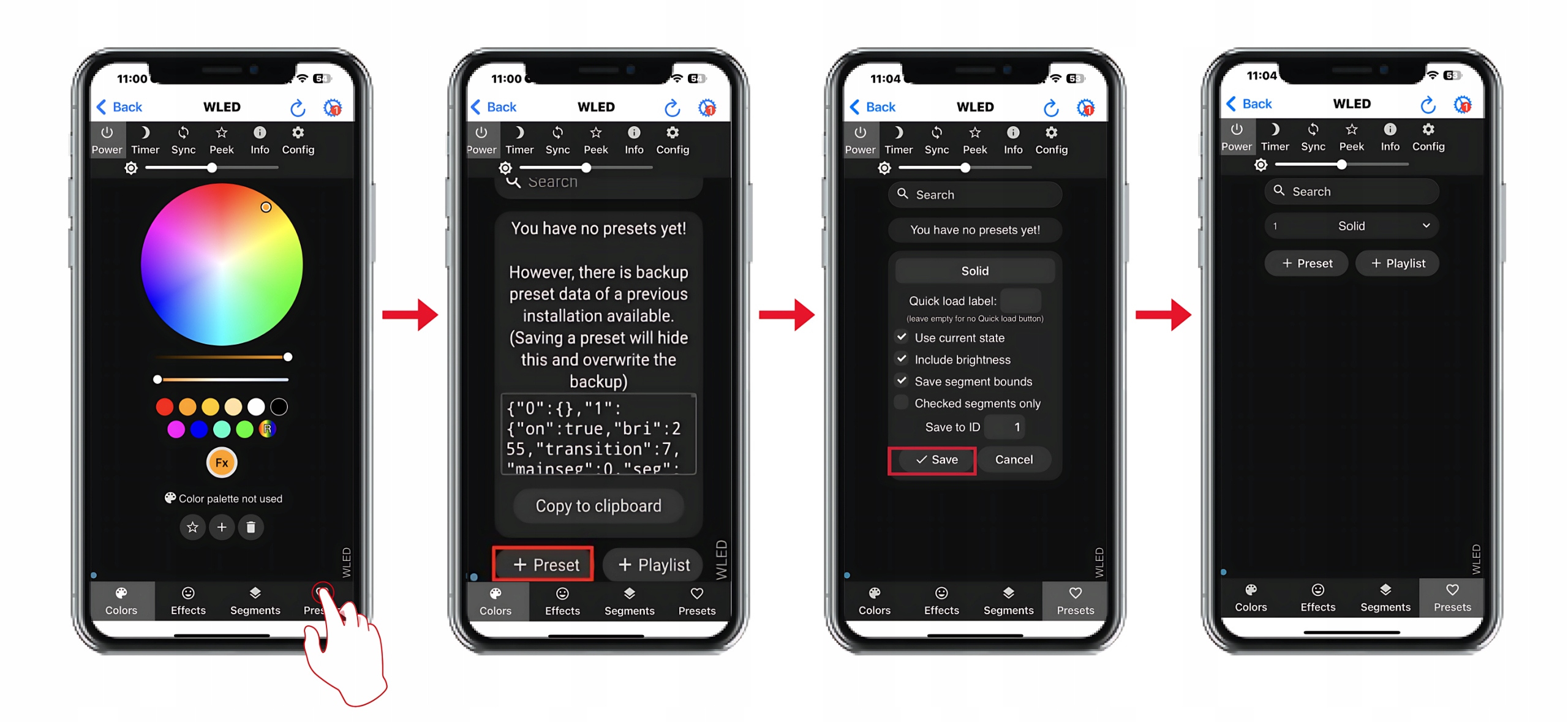 - Aplikacja WLED / WWW: Sterowanie z aplikacji lub przeglądarki
