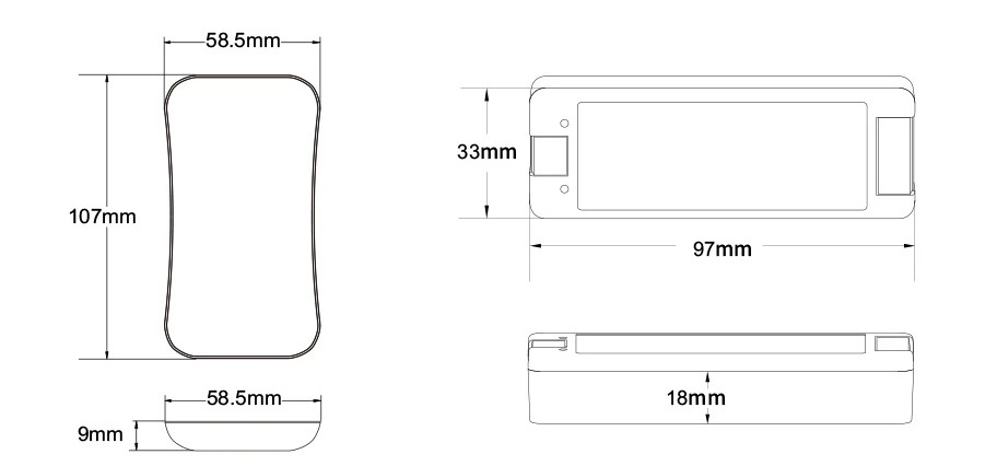 - Wymiary: 107 × 58.5 × 9 mm
