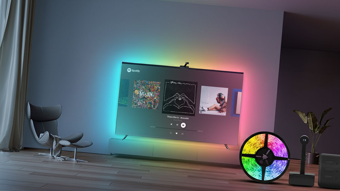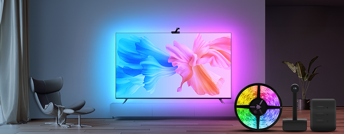 - Przyklej, podłącz i gotowe: Tło za TV natychmiast nabiera klimatycznej głębi, nie wymagając wysiłku.
