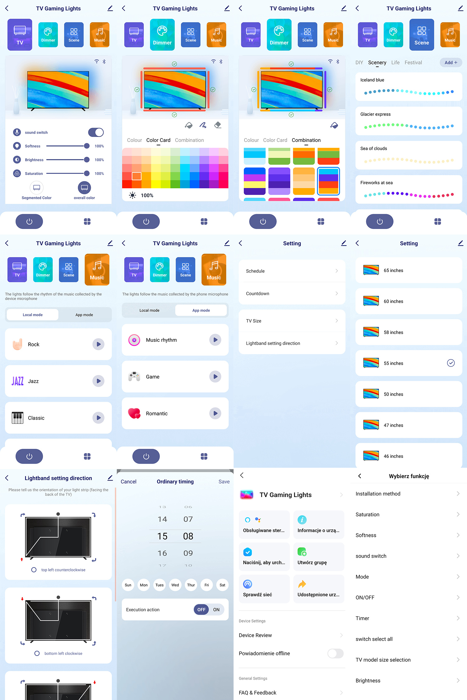- Elastyczna taśma LED 3.8 m: Dopasowuje się do większości telewizorów, idealna do ekranów 55" – 65".