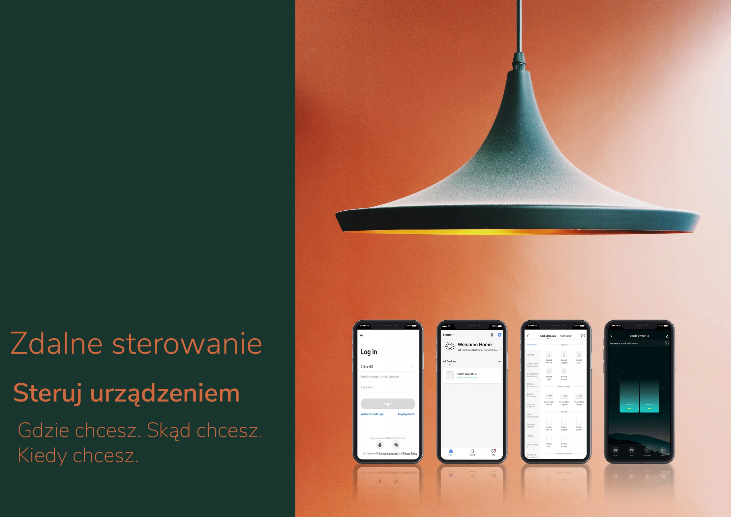 - Inteligentne sceny – kontrolowanie urządzenia na podstawie czujnika ruchu, czujnika otwarcia drzwi/okien lub innych dostępnych czujników, twórz złożone scenariusze wiążące różne urządzenia w aplikacji