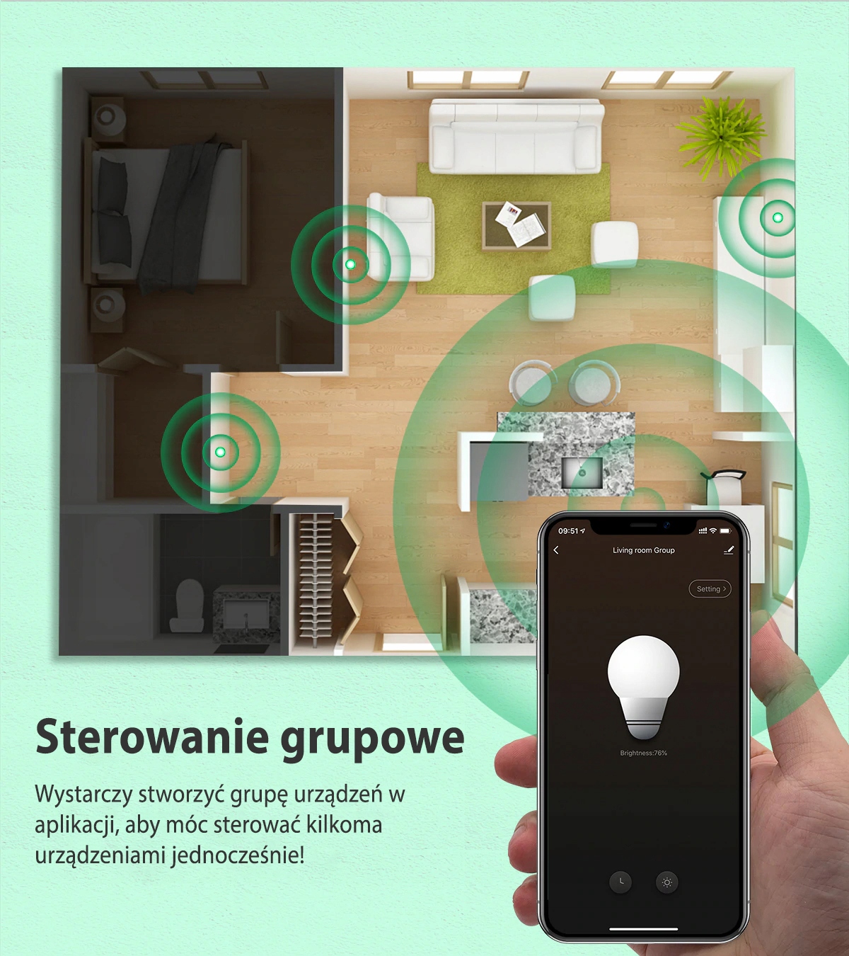 Wystarczy stworzyć grupę urządzeń w aplikacji, aby móc sterować kilkoma urządzeniami jednocześnie.
