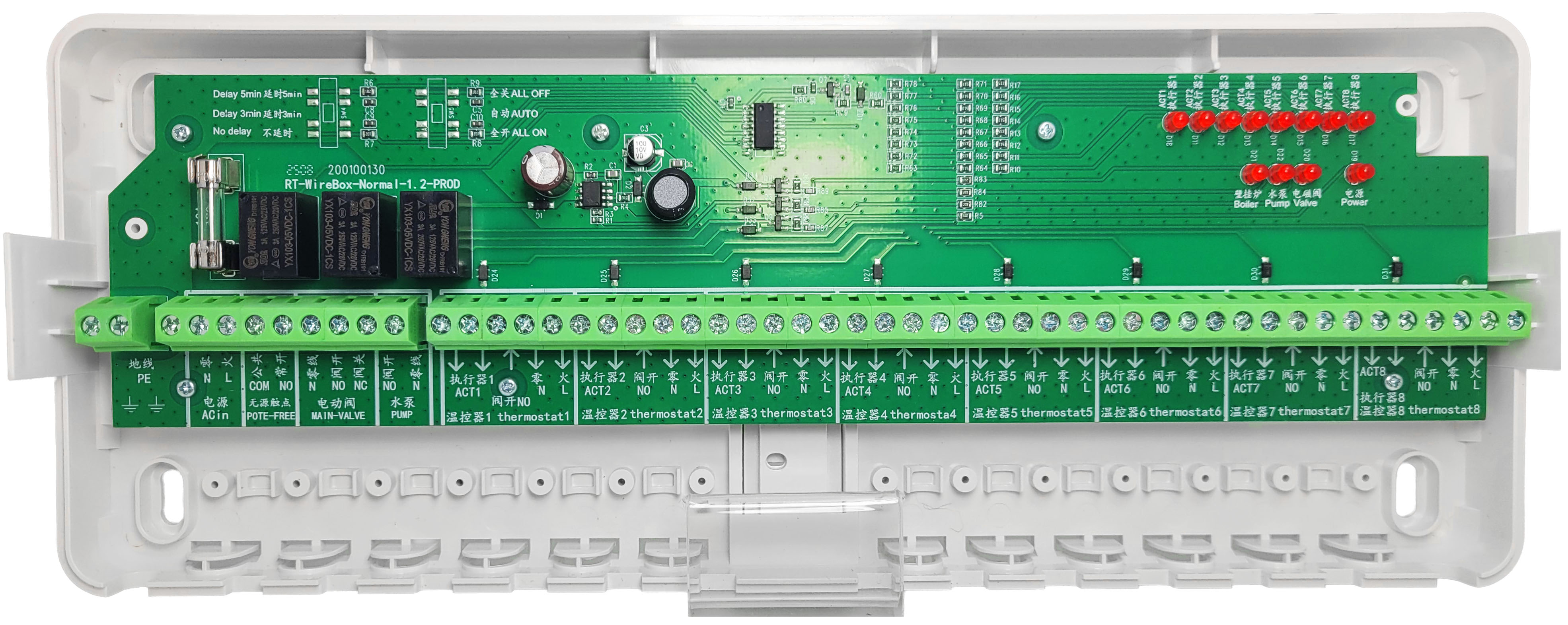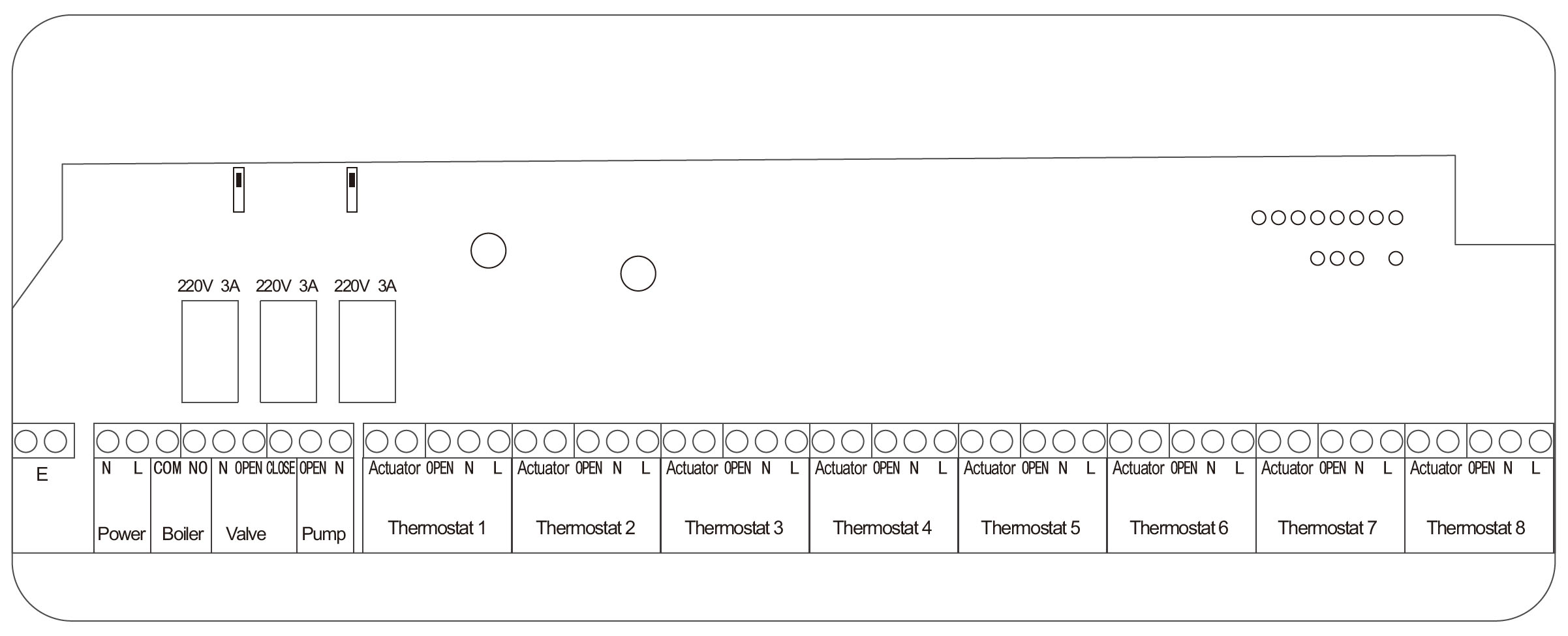 - ✅ Siłowniki 230V NC/NO: Obsługa najpopularniejszych typów przewodowych siłowników do podłogówki.