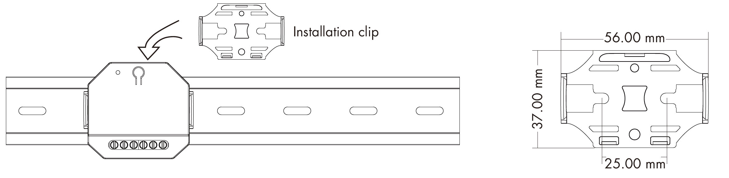 - 5. Bezpiecznie przymocuj ściemniacz wewnątrz ściennej puszki przyłączeniowej za pomocą dostarczonego klipsa montażowego.