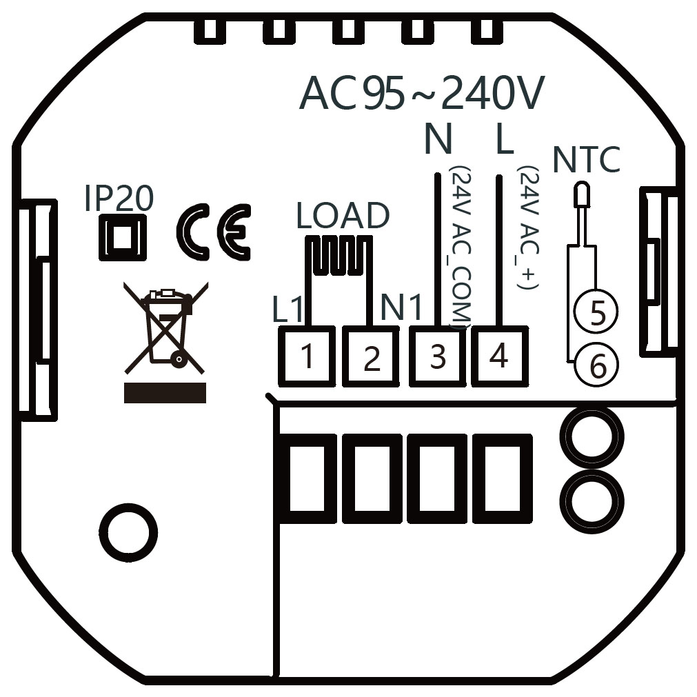 - Obciążenie: Maks. 16A, bezpośrednie sterowanie grzałką elektryczną