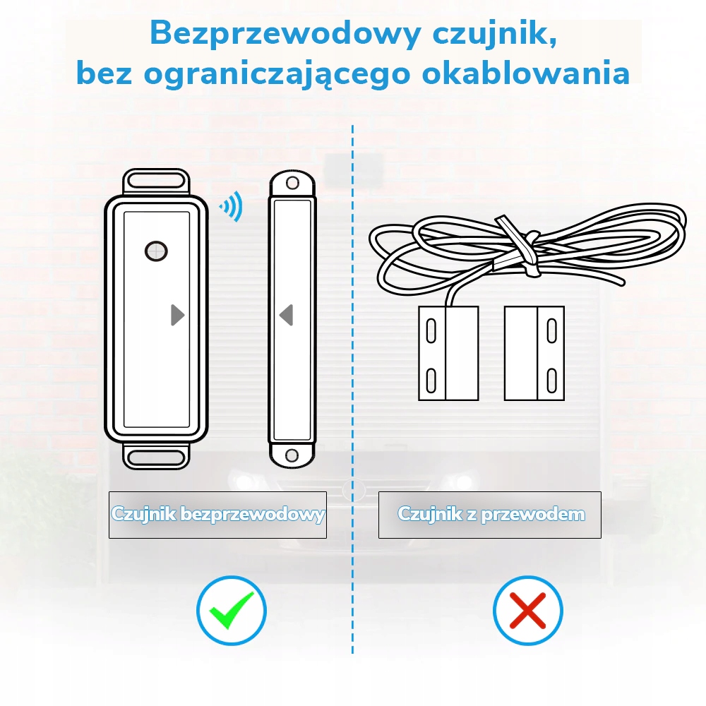 Bezprzewodowy czujnik otwarcia znajduje się w zestawie!