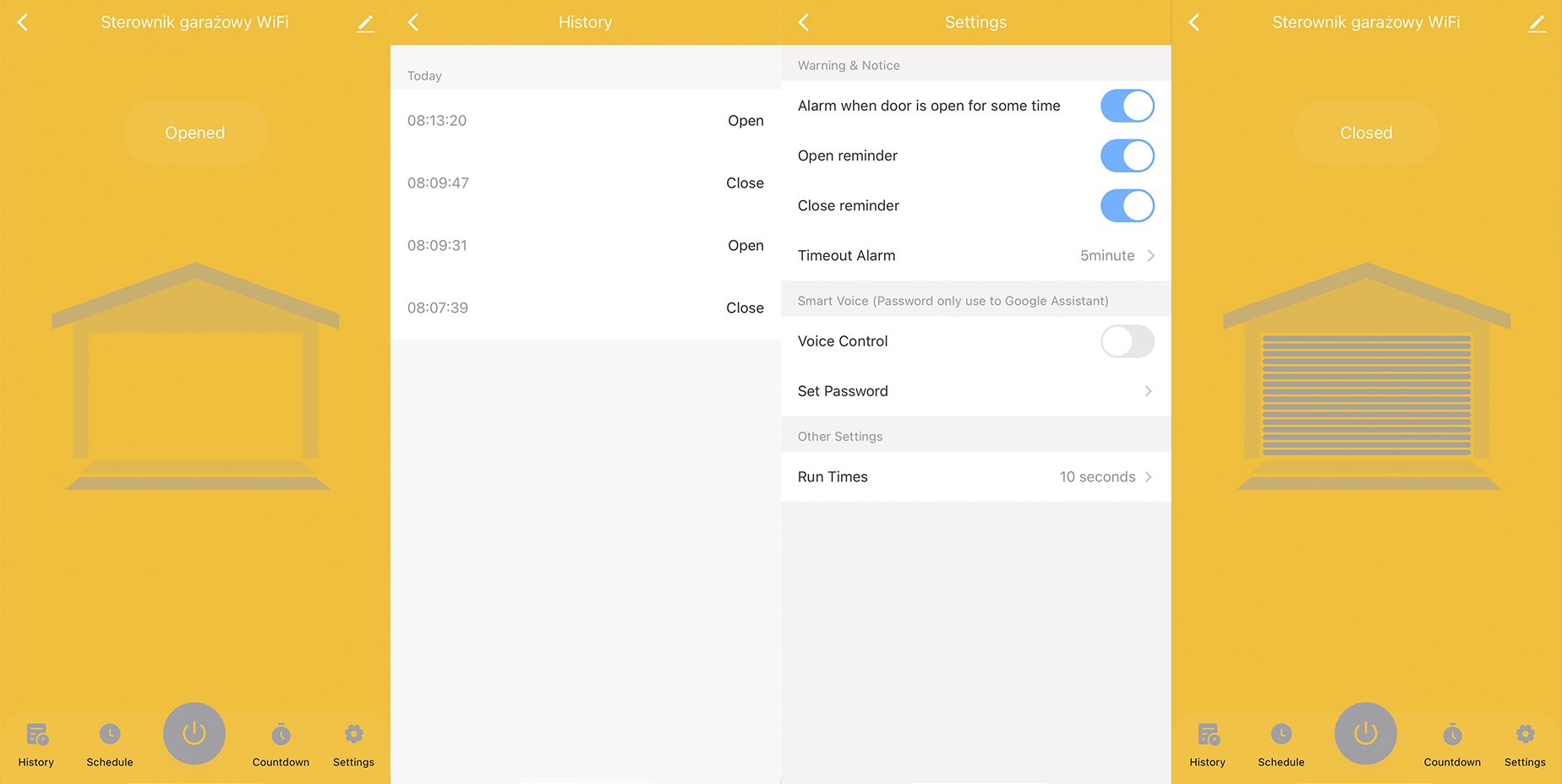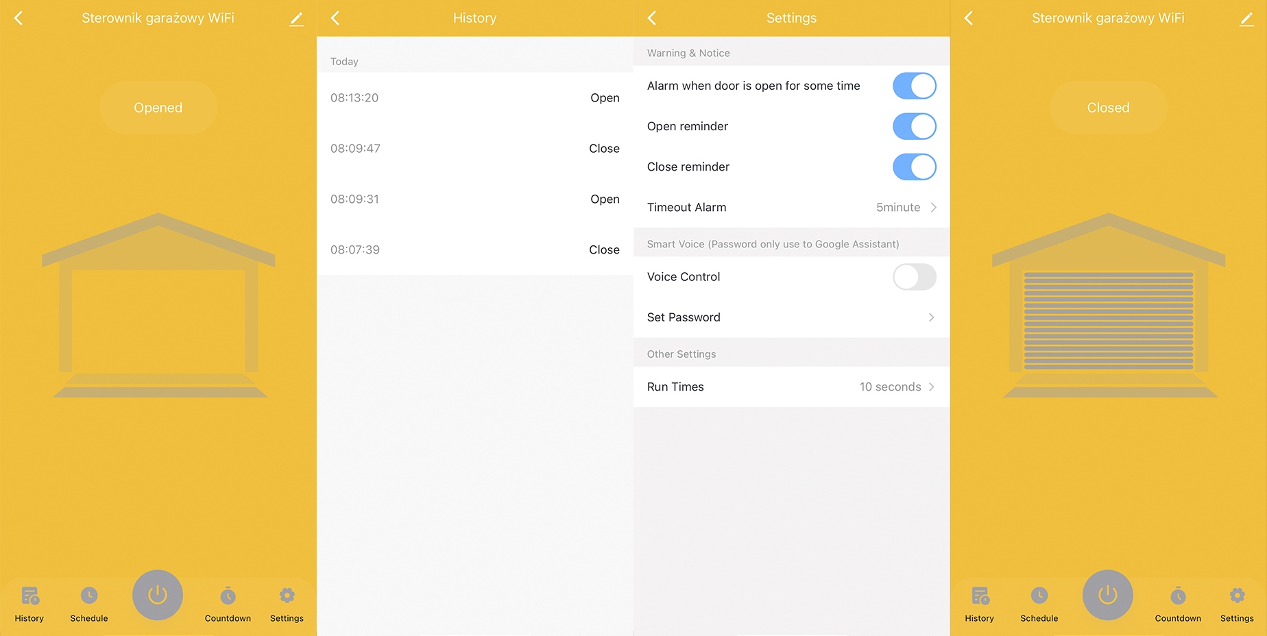 Zostaniesz poinformowany również w przypadku gdy otworzysz bramę garażową i zapomnisz ją zamknąć. Sam ustawisz czas po którym będziesz informowany o otwartej bramie np. po 30 minutach od otwarcia.