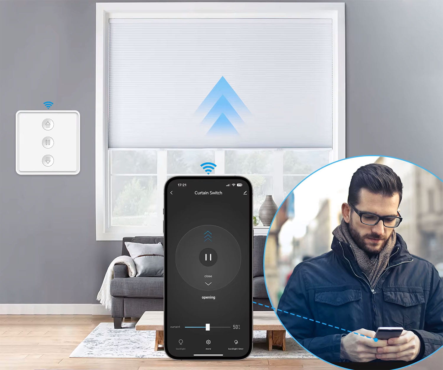 ✅ Sterowanie z dowolnego miejsca: dzięki łączności WiFi i aplikacji TUYA/Smart Life możesz kontrolować rolety z każdego zakątka świata – wystarczy smartfon i internet.