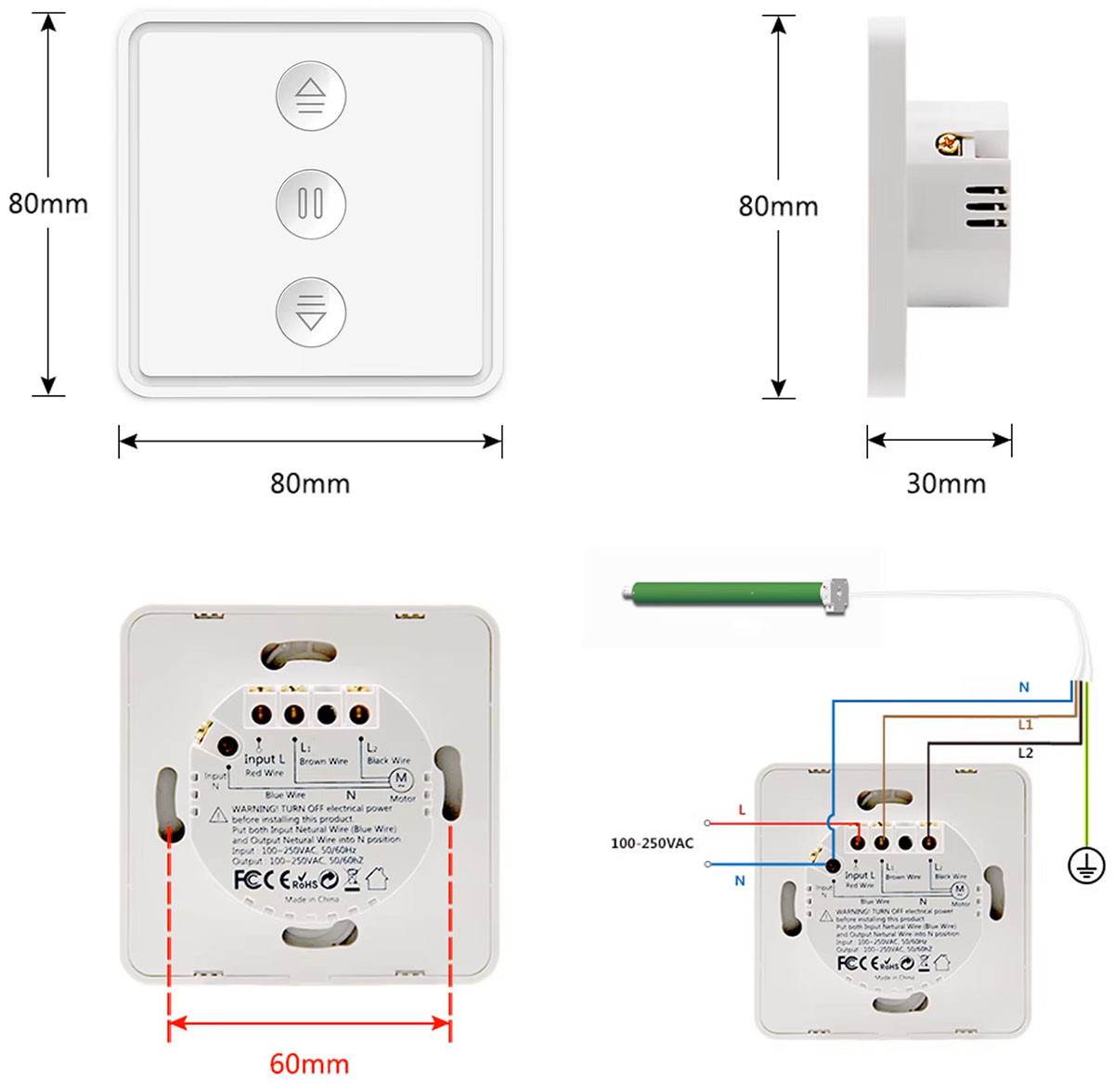 W przeciwnym razie nie da rady podłączyć go do silnika. Przełącznik może być kompatybilny z dowolnym silnikiem elektrycznym rolety z wejściem napięciowym 100-250 VAC, 600W Max.