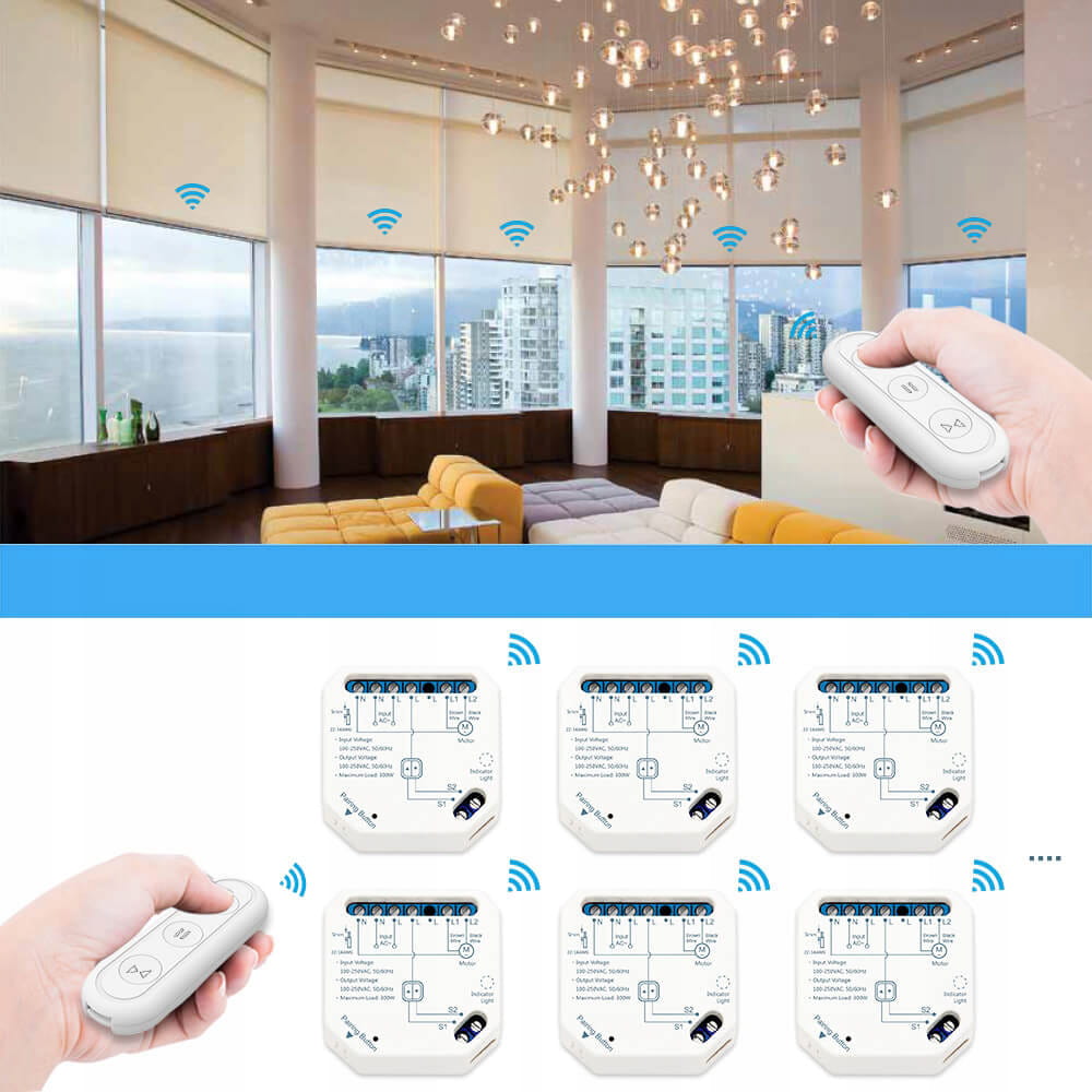 Wbudowany moduł RF umożliwia zdalne sterowanie roletami, nawet jeśli WiFi nie jest dostępne.