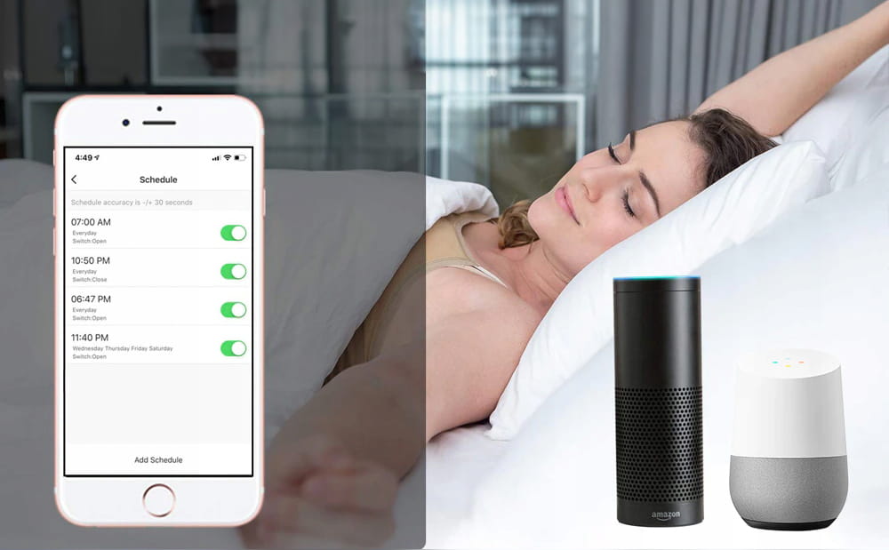 Możesz kontrolować swoje inteligentne zasłony za pomocą telefonu komórkowego w dowolnym miejscu i czasie.