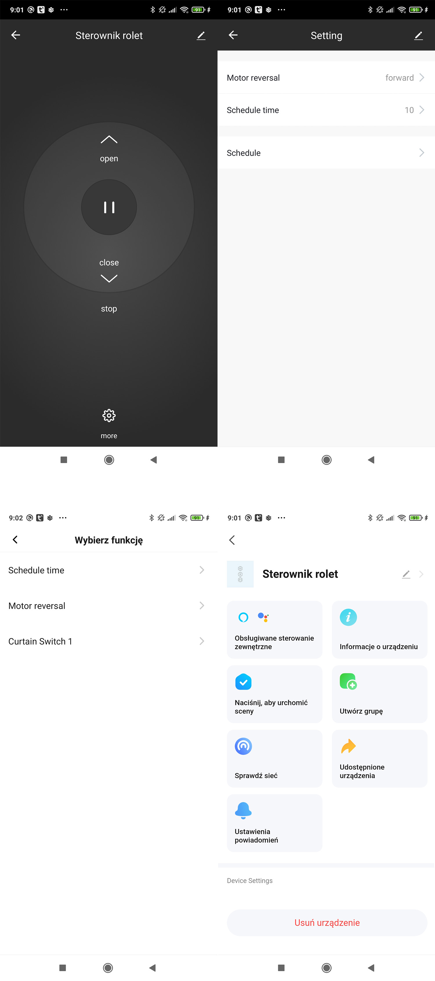 - Timer i harmonogram pozwalające ustawić czas otwierania i zamykania zasłon w dowolnych godzinach